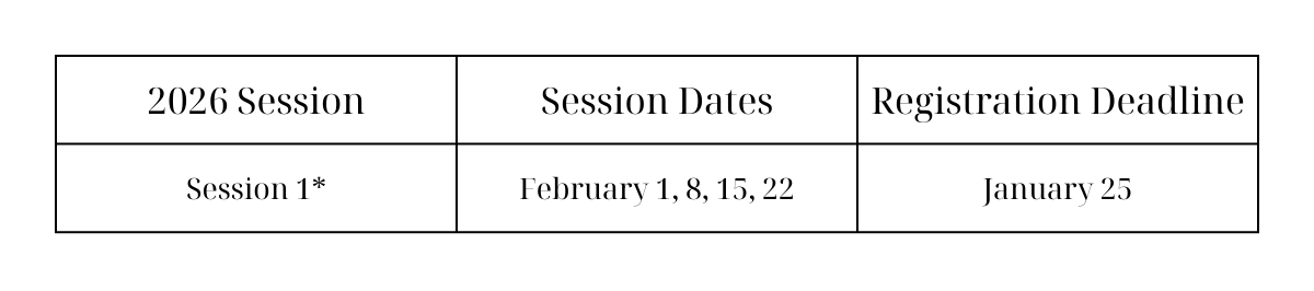 *Session 1 dates are SUNDAYS & will take place at 6:30 PM in the Fellowship Hall. All other sessions are TBD and will be announced early 2026.